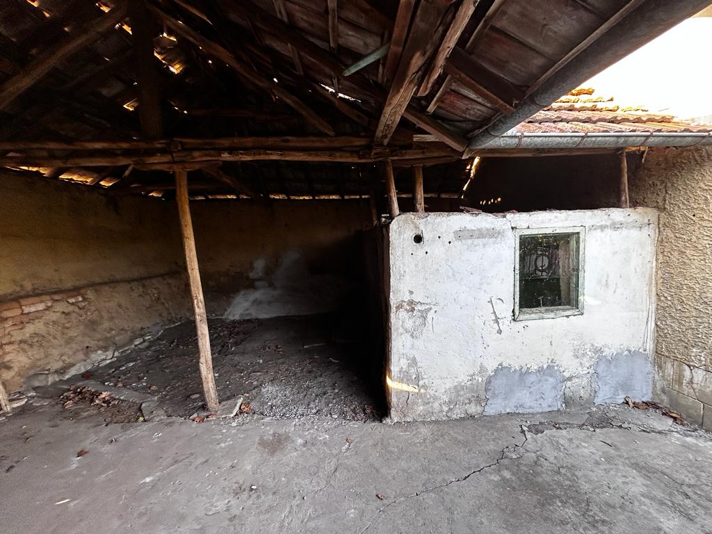 Am Eingang des Grundstücks befindet sich ein großer Schuppen. Außerdem gibt es eine Parkschranke. Es besteht die Möglichkeit, auf der Straße zu parken.